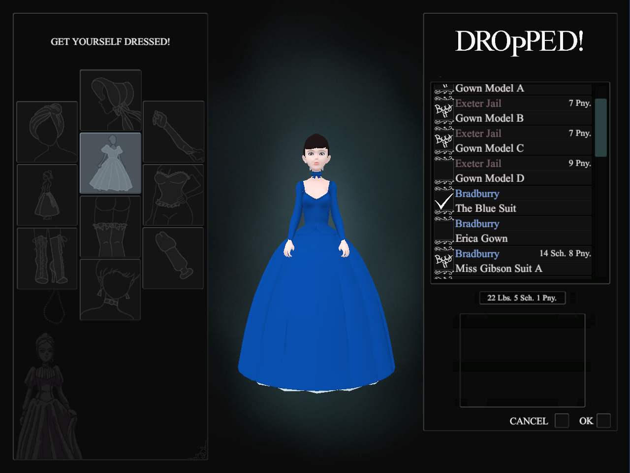 and collect items, choose carefully the gown and accessories you will wear at the gallows, watch carefully by the windows your jailmates being punished the way they